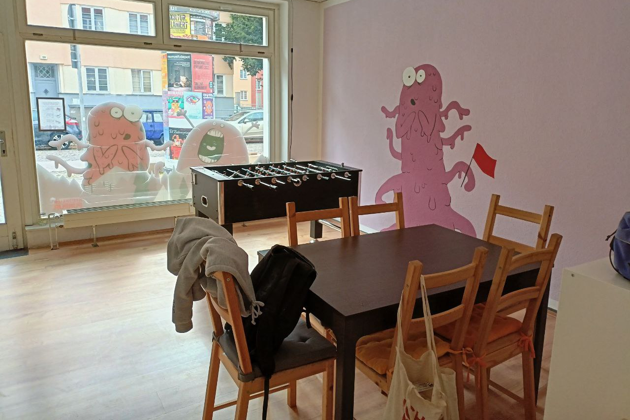 Der Kidsklub Purpur ist ein offener Raum für Kinder in der Teichstraße 63 in Erfurt/Ilversgehoven. Egal ob Experimentieren, Kochen, Zocken, Diskutieren, Ausflüge oder mehr: Im Kidsklub Purpur ist für alles und jede*n Platz. Dabei setzen wir auf gegenseitige Hilfe – denn gemeinsam lässt sich mehr reißen als allein!