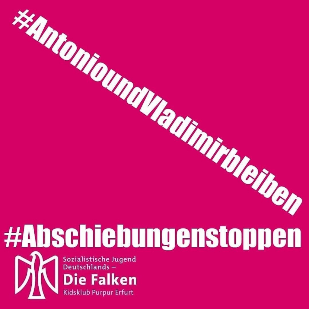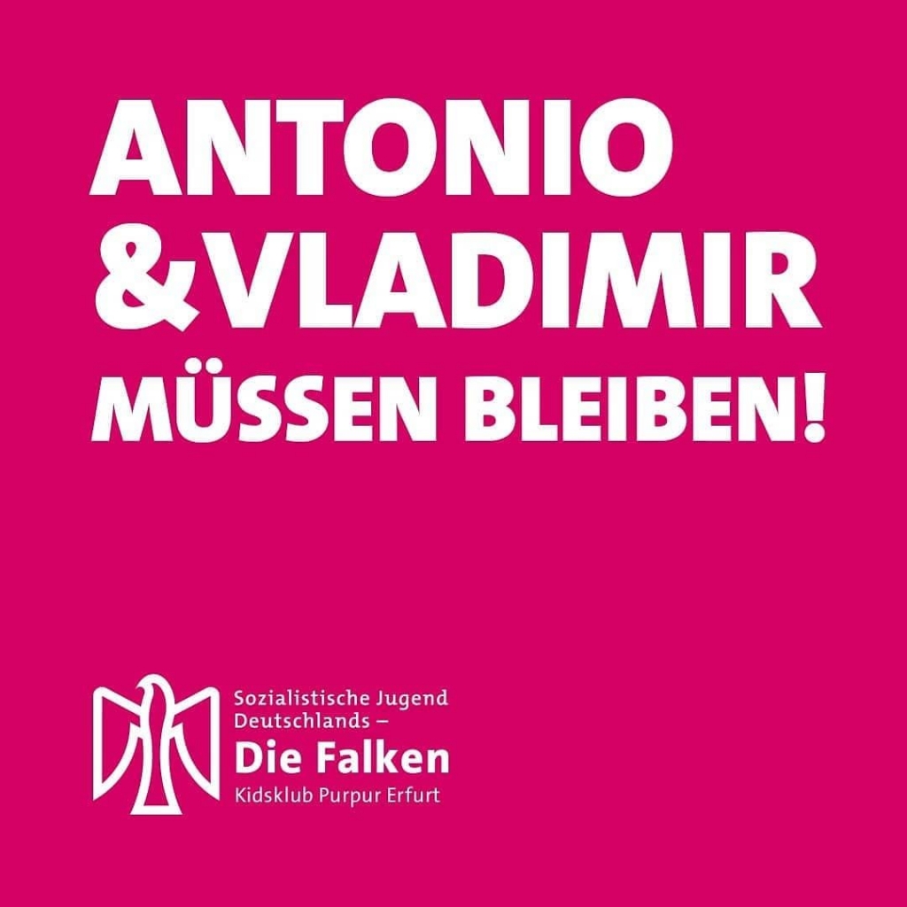 • Teilt unser Sharepic auf euren Social Media Kanälen mit dem #AntonioundVladimirbleiben #Abschiebungenstoppen