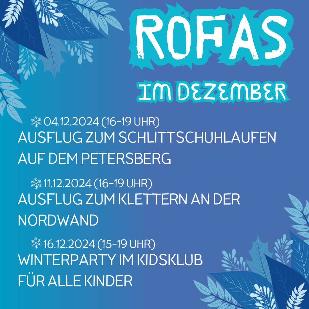Im Dezember laden wir alle Kinder zwischen 12 und 15 Jahren ein, mit uns Ausflüge zu unternehmen.