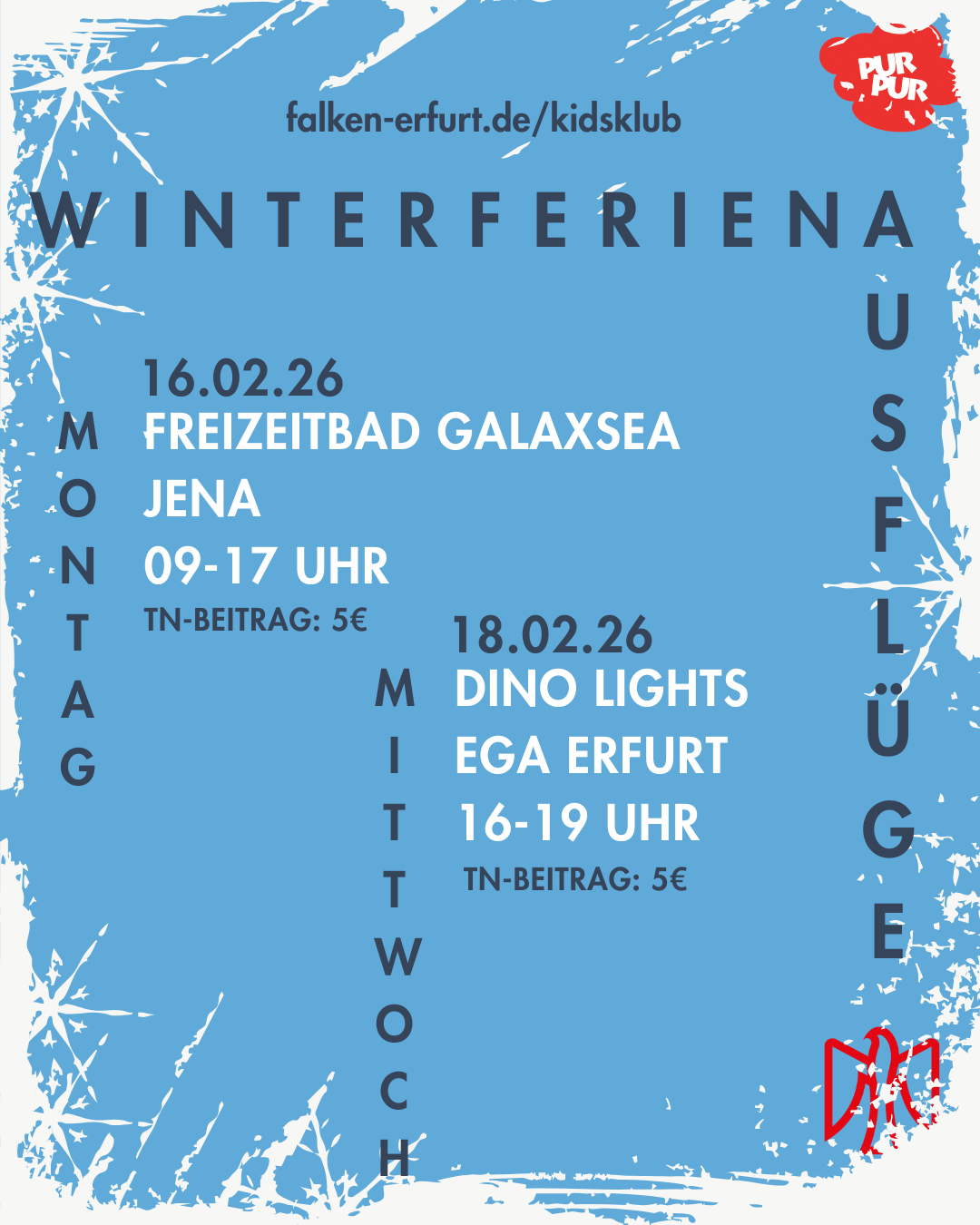 Ihr habt Fragen? Meldet euch bei Anja (0178 – 520 55 18) oder unter kidsklub@falken-erfurt.de.