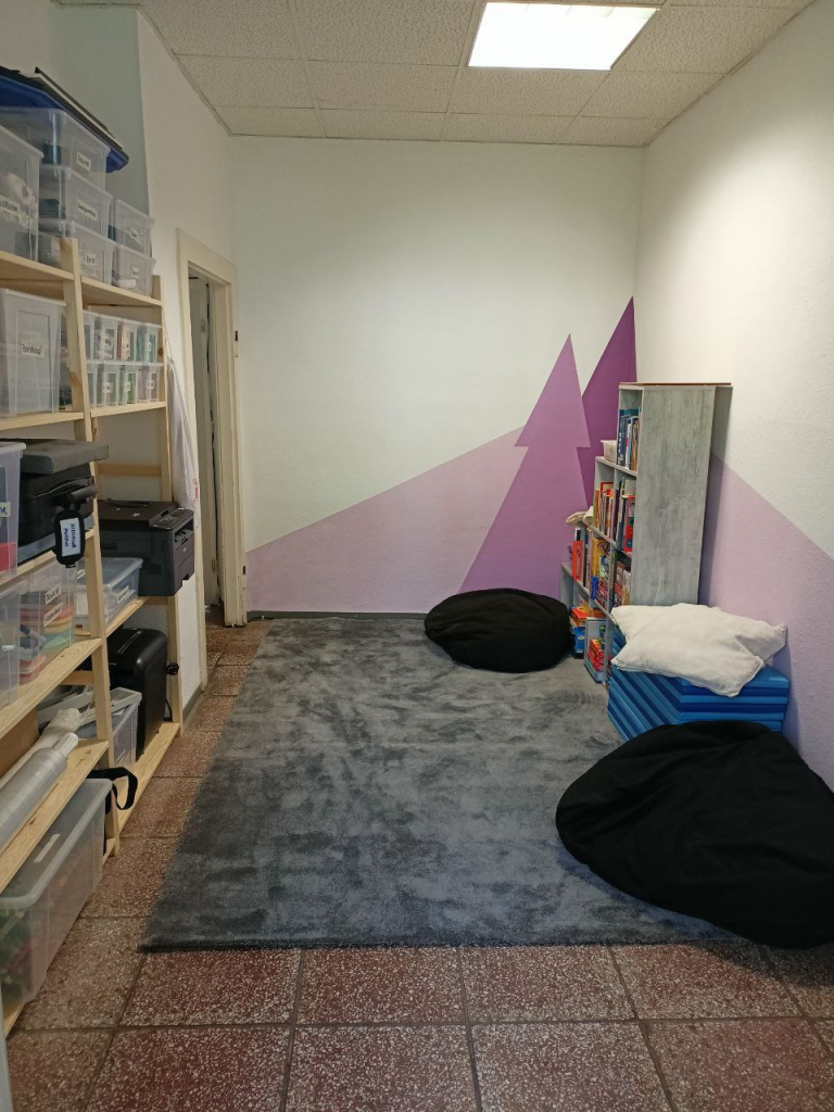 Seit dieser Woche habe wir wieder wie gewohnt dreimal die Woche für Kinder und Jugendliche im Alter von 6 bis 15 Jahren geöffnet. Wir haben die Sommerzeit genutzt und mit finanzieller Unterstützung der Sparkassenstiftung Erfurt unsere Räumlichkeiten renoviert. Die Wände wurden gestrichen, neue Regale und Teppiche angeschafft und eine Chillecke geschaffen.
