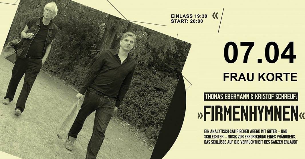 Auf der Leinwand: Firmenhymnen wortgetreu, aber teilweise mit verführerisch guter Musik unterlegt: Bernadette La Hengst, Lisa Politt, Thomas Pigor, Dirk von Lowtzow (Tocotronic), Gustav Peter Wöhl er, Schorsch Kamerun (Die Goldenen Zitronen), Rocko Schamoni, Harry Rowohlt, Horst Tomayer, Jens Rachut, Dieter Glawischnig, Andreas Spechtl (Ja, Panik)