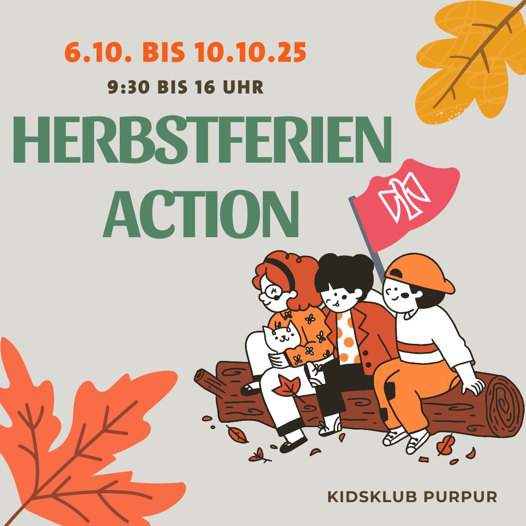 Vom 6.10. bis 10.10.2024 machen wir wieder eine Herbstferienaction im Kidsklub Purpur für Kinder und Jugendliche im Alter von 6 bis 16 Jahren.