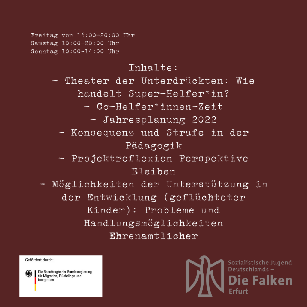 Vom 19. bis 21. November haben sich die ehrenamtlichen Helfer*innen, sowie die Projektreferentin von Perspektive Bleiben getroffen, um auf die Arbeit im Kidsklub zu reflektieren und das kommende Jahr zu planen.