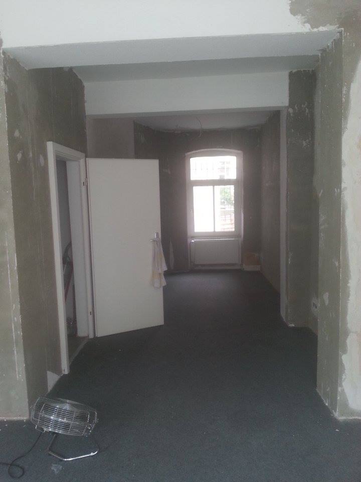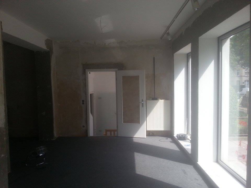 Gerade ist Endspurt angesagt im Ladenlokal: Unser Büro ist fast fertig und ab dem 01.10 wird dort auch regelmäßig gearbeitet. Fast täglich sind Leute im Ladenlokal, um zu arbeiten. Die Wände im großen Raum sind jetzt endlich von allen Tapetenresten befreit und alles ist grundiert, Klo und Küche sind bereits fertig gestrichen. Heute Nachmittag wird der große Raum gestrichen, am kommenden Donnerstag wird fast die komplette Einrichtung fürs Ladenlokal gekauft und an den folgenden Tagen eingebaut. Auch der Vinyl-Boden und der Herd für die Küche wurden bestellt.