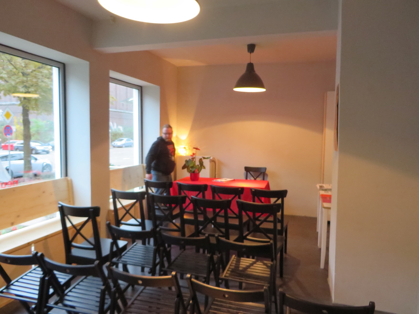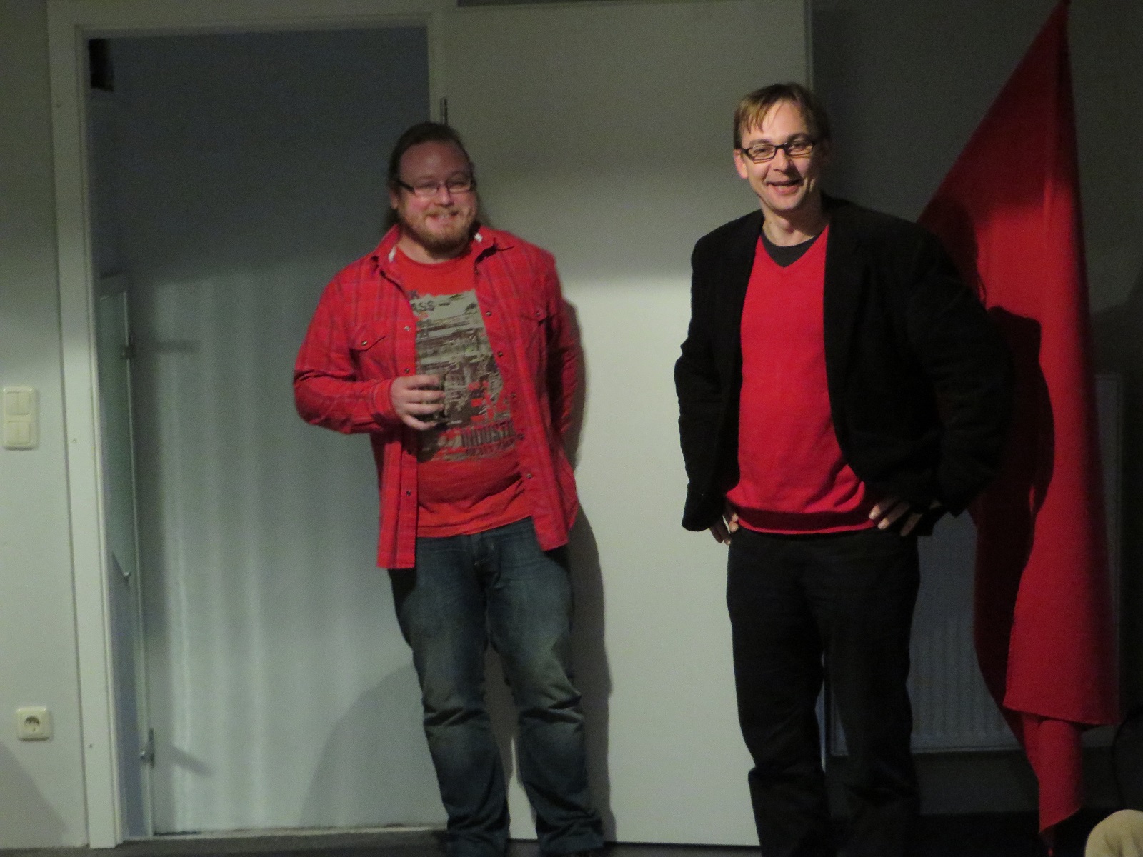 Auf unserer Eröffnungsfeier blickten wir gemeinsam – in den Reden und mit einer Fotopräsentation – auf das bisher Geschaffte zurück. Den Aufbau der Sozialistischen Jugend in Erfurt in den letzten Jahren, die gemeinsame Suche eines geeigneten Ladenlokals und die Renovierung der Räumlichkeiten von Juli bis Oktober.