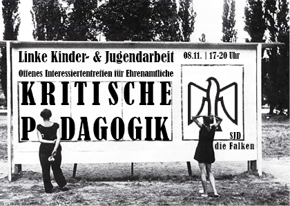Dabei sind wir immer auf der Suche nach neuen Helferinnen und Helfern, die Lust haben, Kindergruppen gemeinsam mit uns aufzubauen und mitzugestalten. Auch setzen wir uns theoretisch in unseren Arbeitskreisen mit linken Pädagogikkonzepten auseinander. Unsere Arbeit wollen wir beim offenen Interessiertentreffen vorstellen.