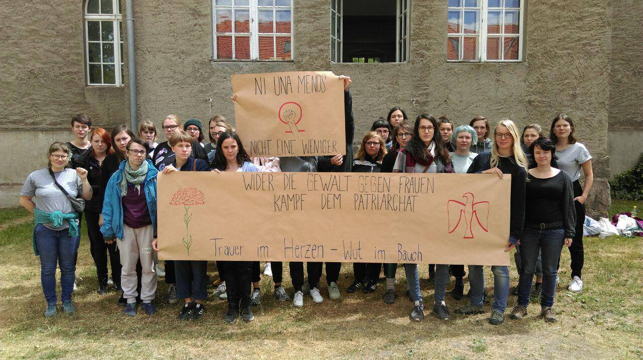 Im Rahmen des diesjährigen Frauen*-Theorie-Seminars, welches wir wieder aktiv mitgestalteten, wurde auch eine gemeinsames Foto gemacht, um unserer Trauer um die ermordete Genossin Sophia Ausdruck zu verleihen.