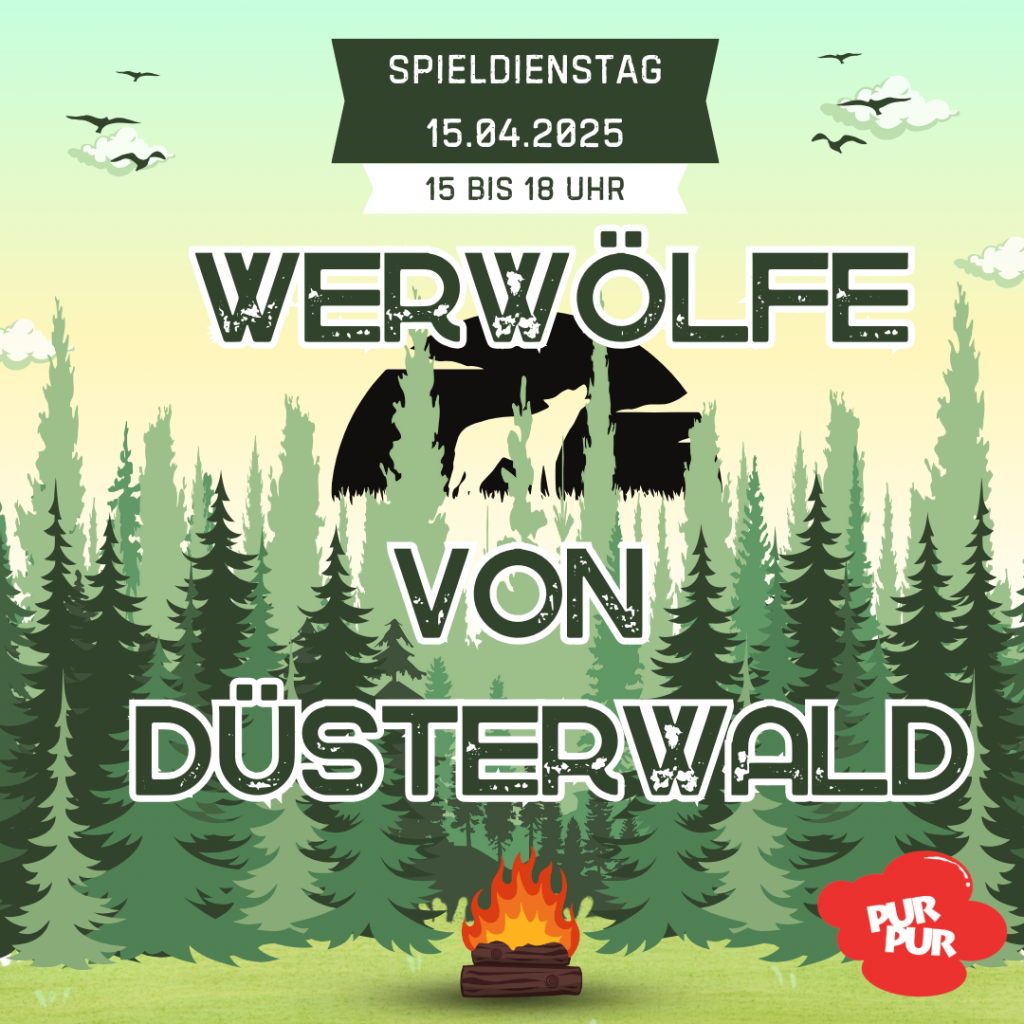 Am Dienstag, den 15.04.25, öffnen wir den Kidsklub für eine Spezial-Öffnungszeit, die ihr euch schon lange gewünscht habt: Hereinspaziert zum Spieldienstag. Wir wollen zusammen „Werwölfe von Düsterwald“ spielen. Kommt von 15 bis 18 Uhr vorbei!