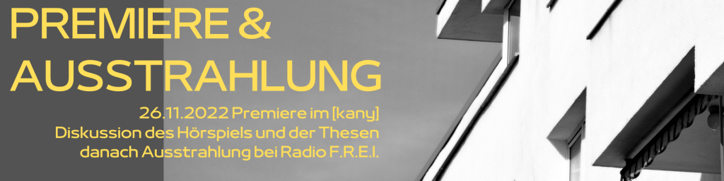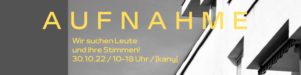Wir nehmen das Hörspiel gemeinsam auf und feiern vor der Erst-Ausstrahlung im Radio seine Premiere in Präsenz im [kany]! Alle Informationen zur Aufnahme, zur Premiere und Hintergrundinformationen über die Entstehung unserer Idee findet ihr hier!