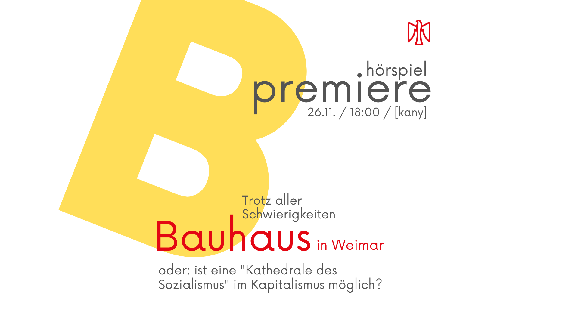 Am 26.11. ab 18:00 Uhr feiert das Hörspiel seine Premiere im [kany], dem Ladenlokal der Falken Erfurt in der Thälmannstraße 26. Hierzu sind alle Beteiligten und Interessierten, alle Genoss*innen und Bauhausbegeisterten, Expert*innen, Ästhet*innen und Kritiker*innen herzlich eingeladen! Wir freuen uns auf einen Abend im schicksten Dirn, mit feinem Garn und prickelndem Sekt.
