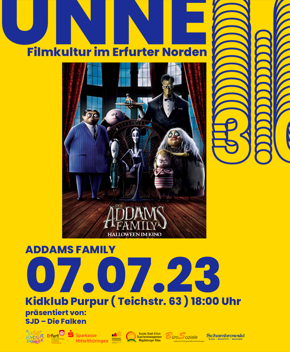 Und es geht weiter! Nächste Woche Freitag zeigen wir um 18 Uhr „Die Addams Family“ für Kinder von 6 bis 12 Jahren.